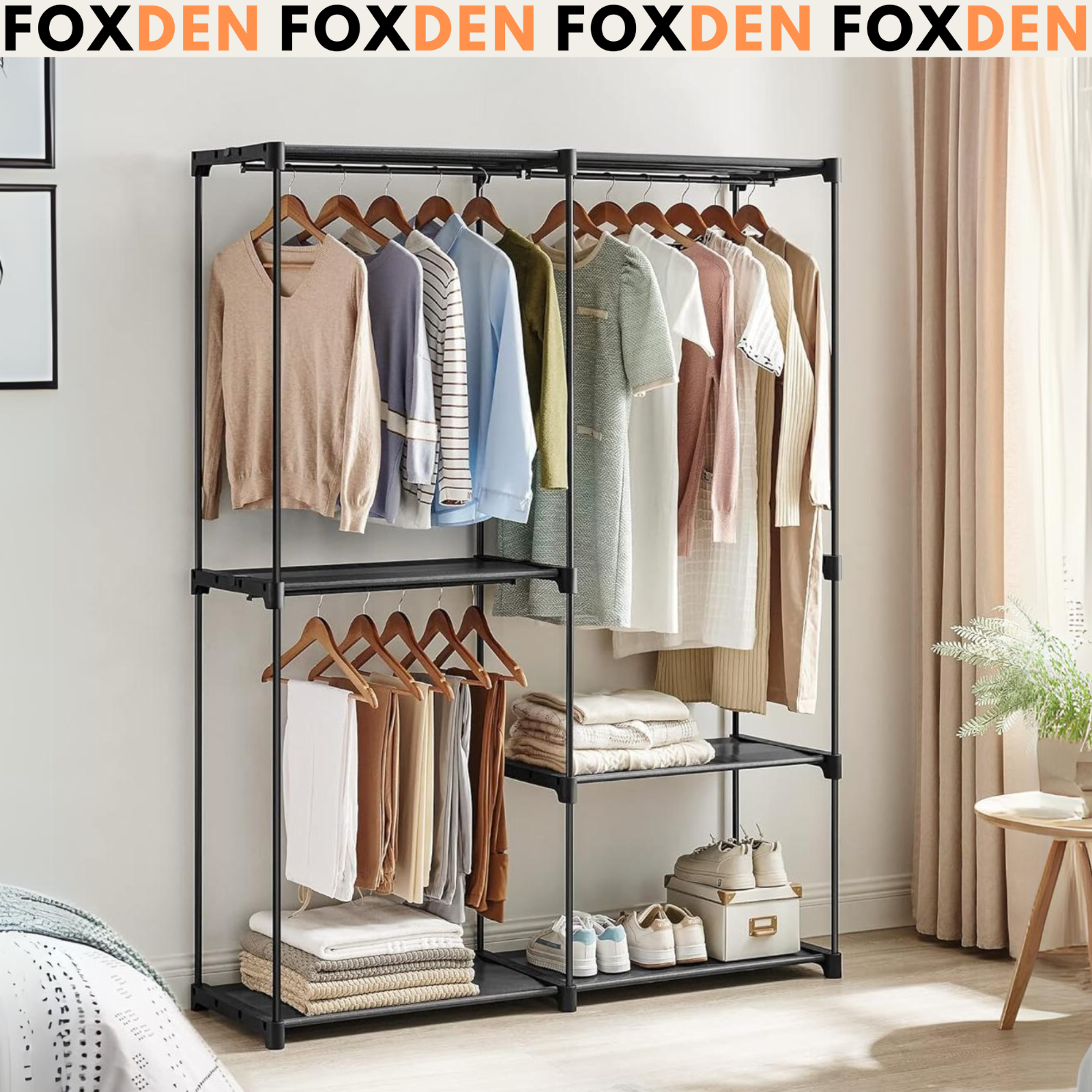 Open Wardrobe Clothes Rail Bedroom Clothes Storage Hanging Shelves
