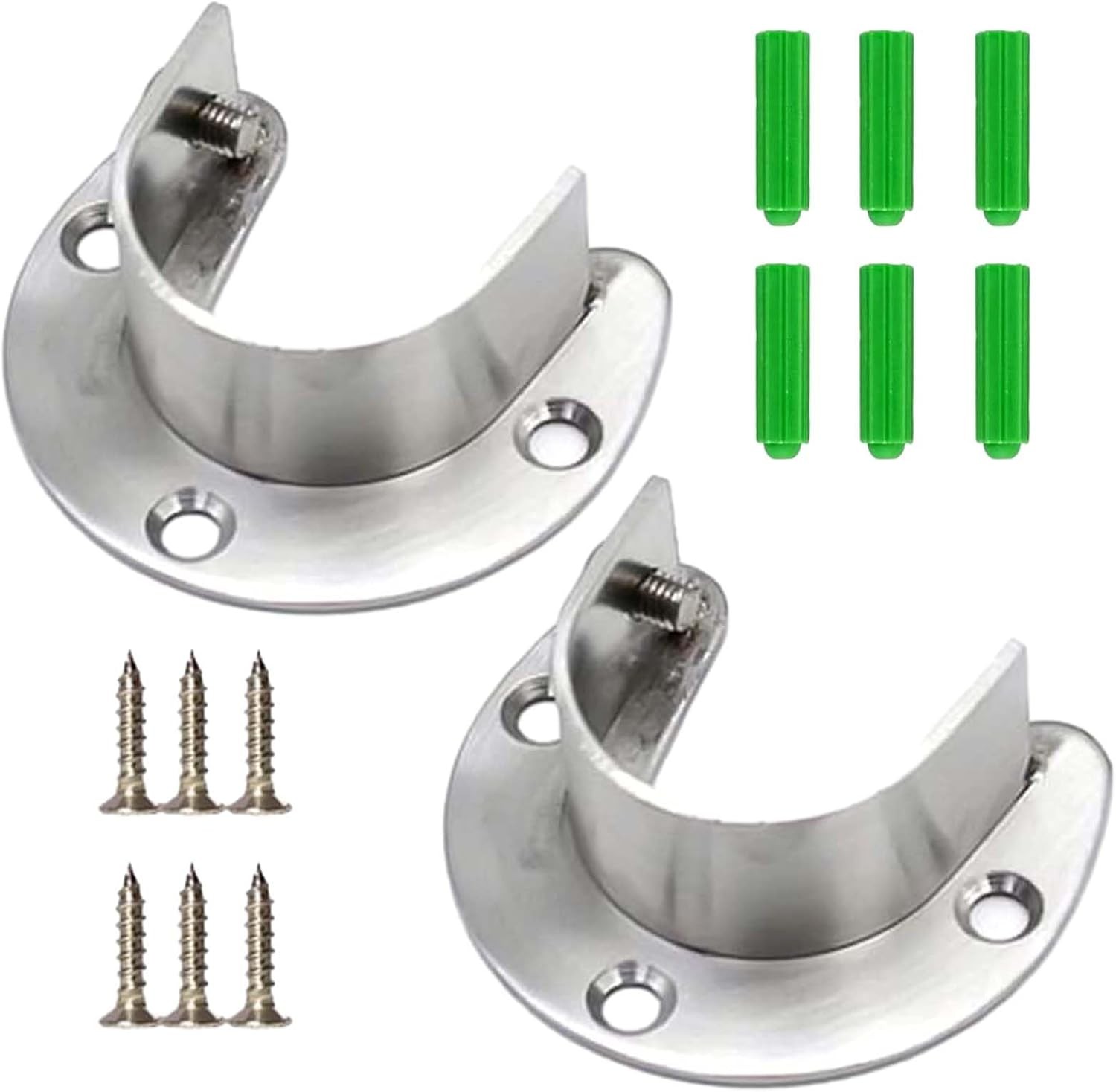 Ciieeo 2Pcs Stainless Steel Wardrobe Rail Flange Holder Rust-resistant Closet Rod Brackets with Anti-rotation Fixing for Clothes Hanging Rails and Curtain Poles