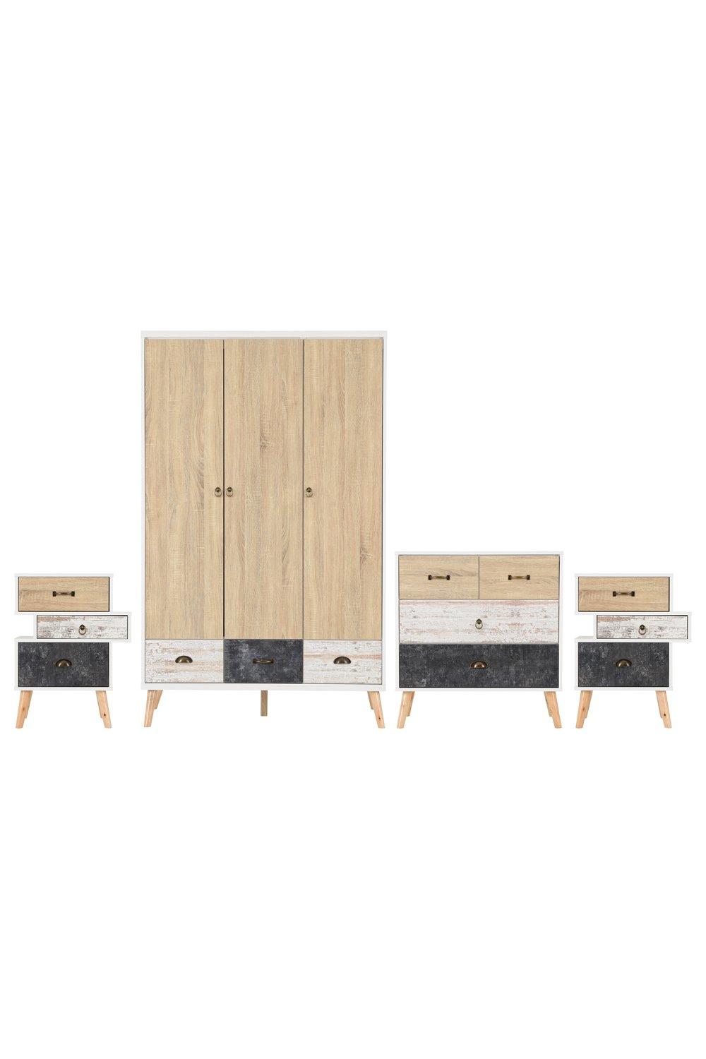 Nordic 3 Door 3 Drawer Wardrobe Bedroom Set