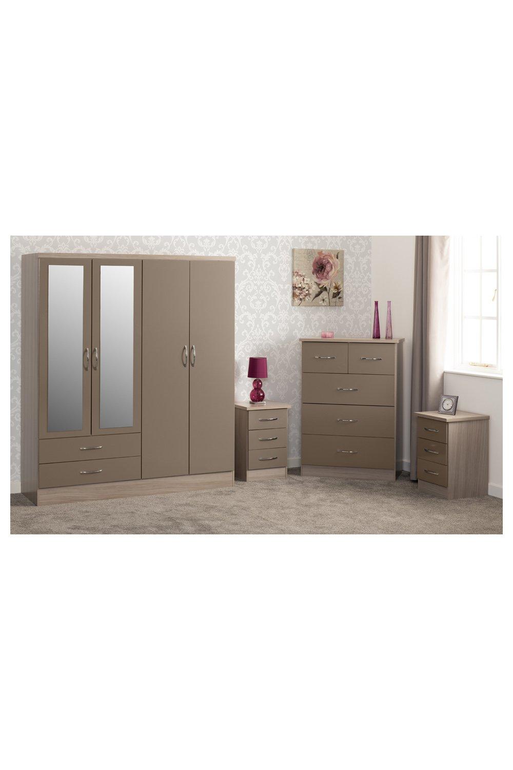 Nevada 4 Door 2 Drawer Mirrored Wardrobe Bedroom Set