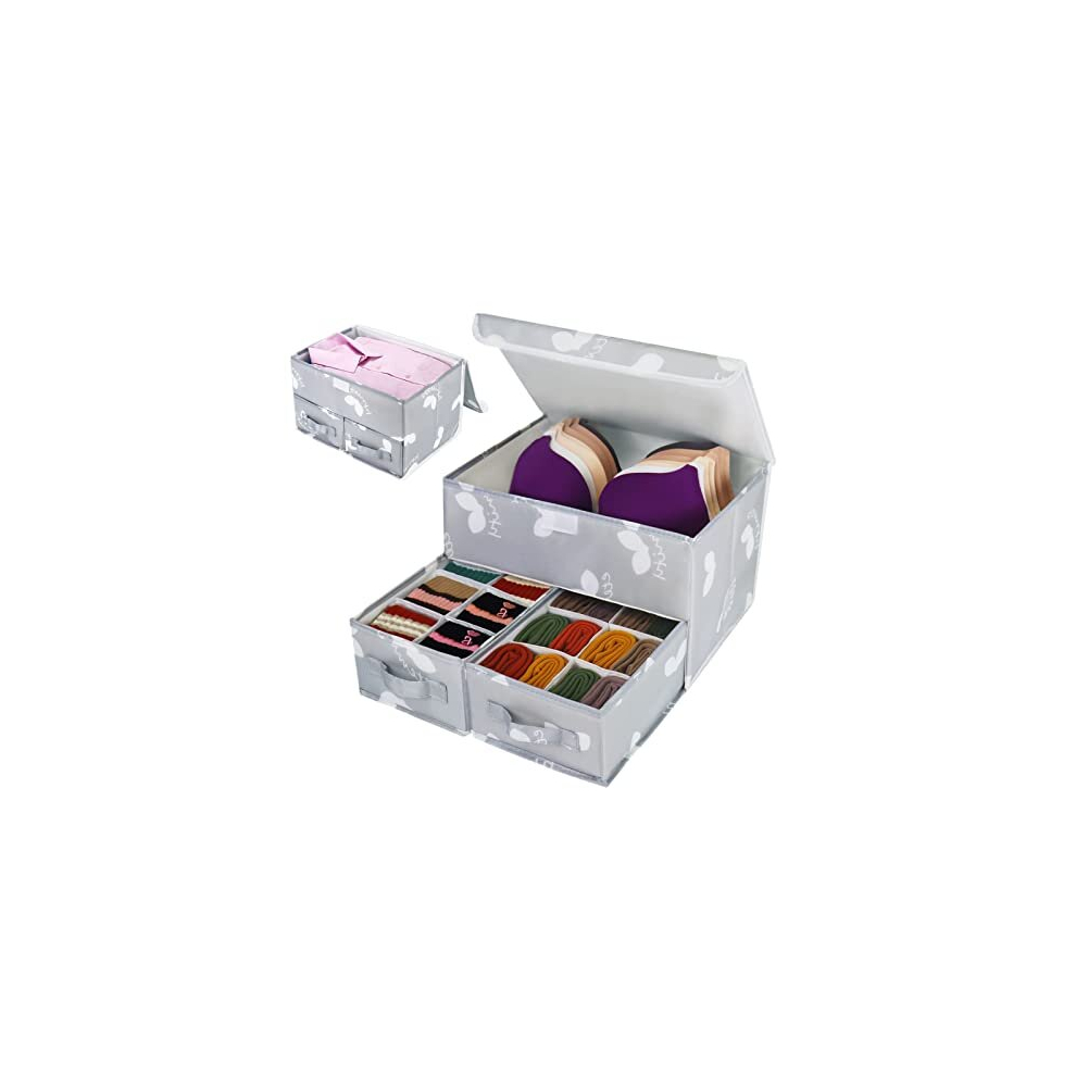 Sock Underwear Drawer Organiser with Lid - Wardrobe Clothes Storage Boxes with
