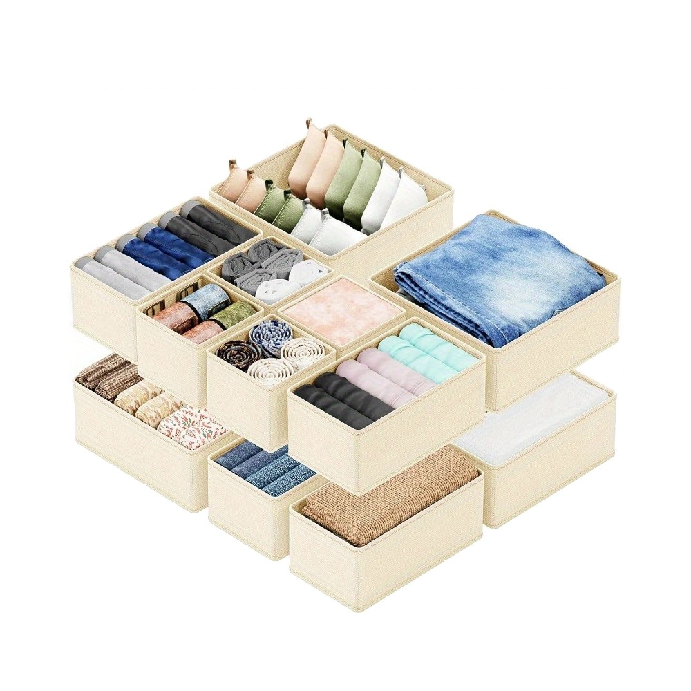 Homsorout Drawer Organisers Foldable Drawer Dividers - 10 Pack Fabric Clothes Wardrobe Storage Boxes Drawer Dividers Cubes for Dresser, Socks, Underwear, Ties, Bedroom - Beige