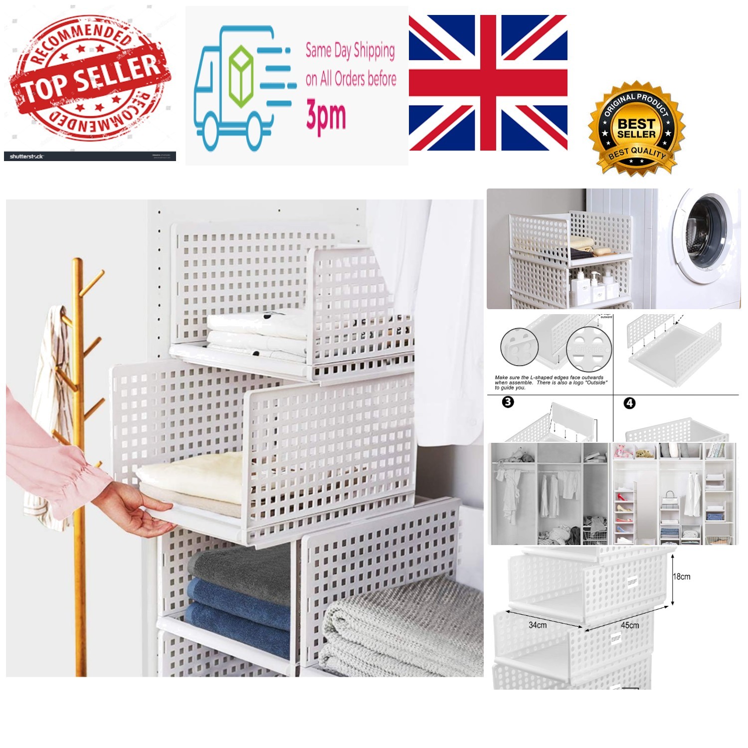 UMTA 4 Pack Foldable Wardrobe Storage Organizer Boxes, Heavy-Duty Plastic Close