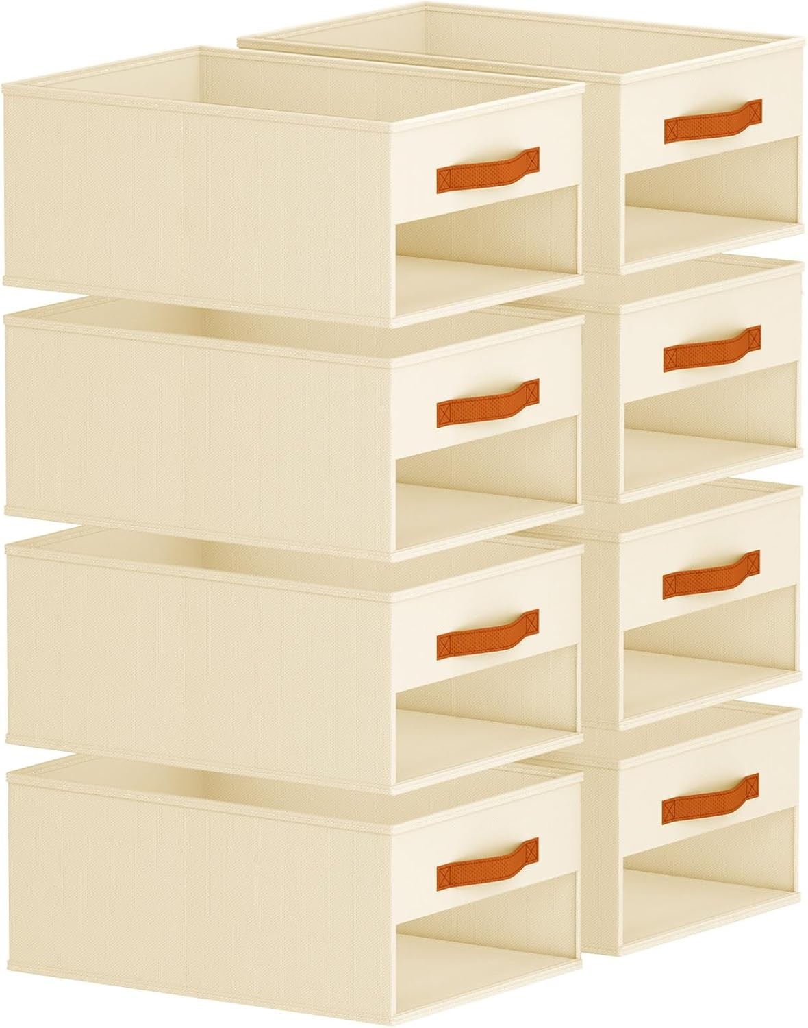 Homsorout Large Wardrobe Storage Boxes - 8 Pack Foldable Drawer Organiser Clothes with Clear Window & Handles Fabric Basket Organisers for Bedroom Jackets, Shirts, Pants, Towels, Socks (Beige)