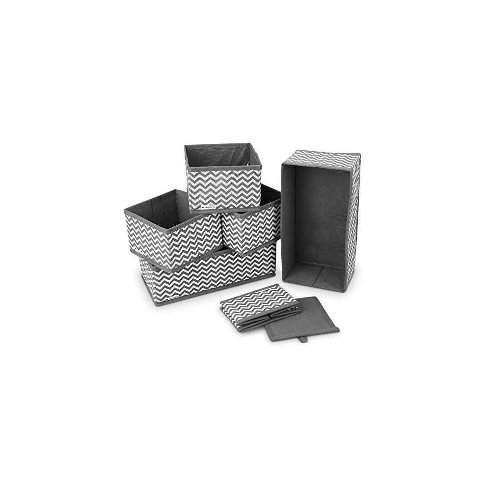 6 Pcs Fabric Drawer Organisers - Set of 6 Wardrobe Organiser Storage Boxes Foldable Storage Cubes for Clothes, Socks, Underwear - Zigzag