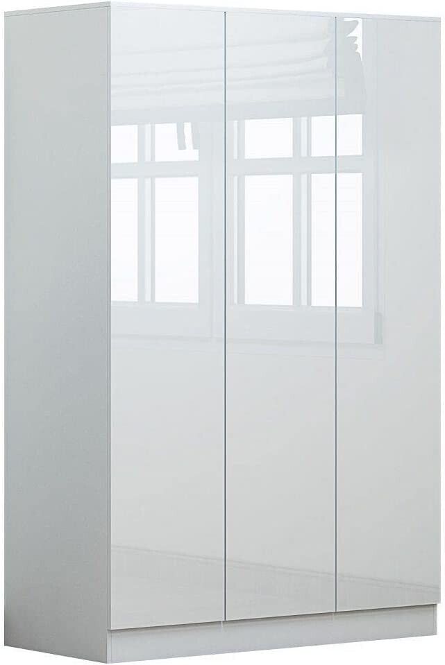 Stora 120cm Modern Bedroom 3 Door Wardrobe with Storage Shelves White Gloss