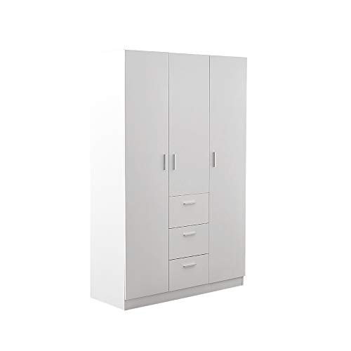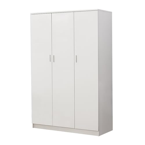 Panana Modern 3 Door Large Wooden Triple Wardrobe Clothes Closet Storage Organiser Furniture Units with Shelves and Drawers Bedroom, 115 x 49 x 181cm (White)