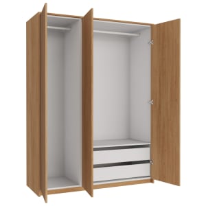 Wickes Claydon Oak Slab Triple Wardrobe with Drawers & Shelves - 2250 x 1500mm