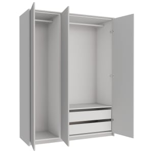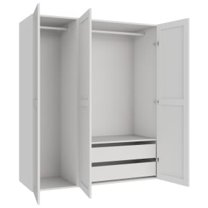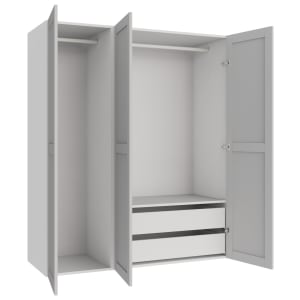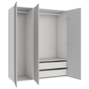 Wickes Claydon White Slab Triple Wardrobe with Shelves, Drawers, Plinth & Panels - 2083 x 1536mm