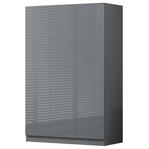 FWStyle 3 Door Triple Wardrobe with Hanging space and shelves - H180 X W120 X D50cm (Grey Gloss)