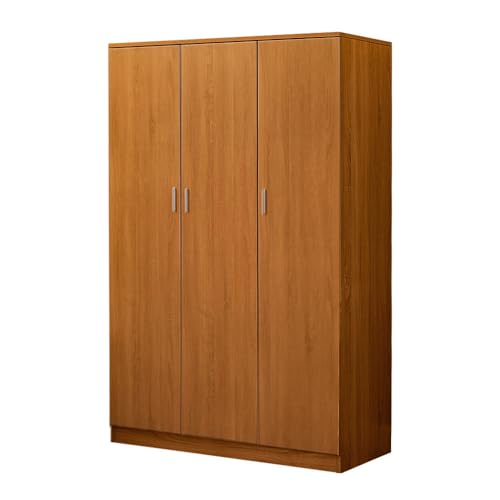 Panana Modern 3 Door Large Wooden Triple Wardrobe Clothes Closet Storage Organiser Furniture Units with Shelves and Drawers Bedroom, 115 x 49 x 181cm (Brown)