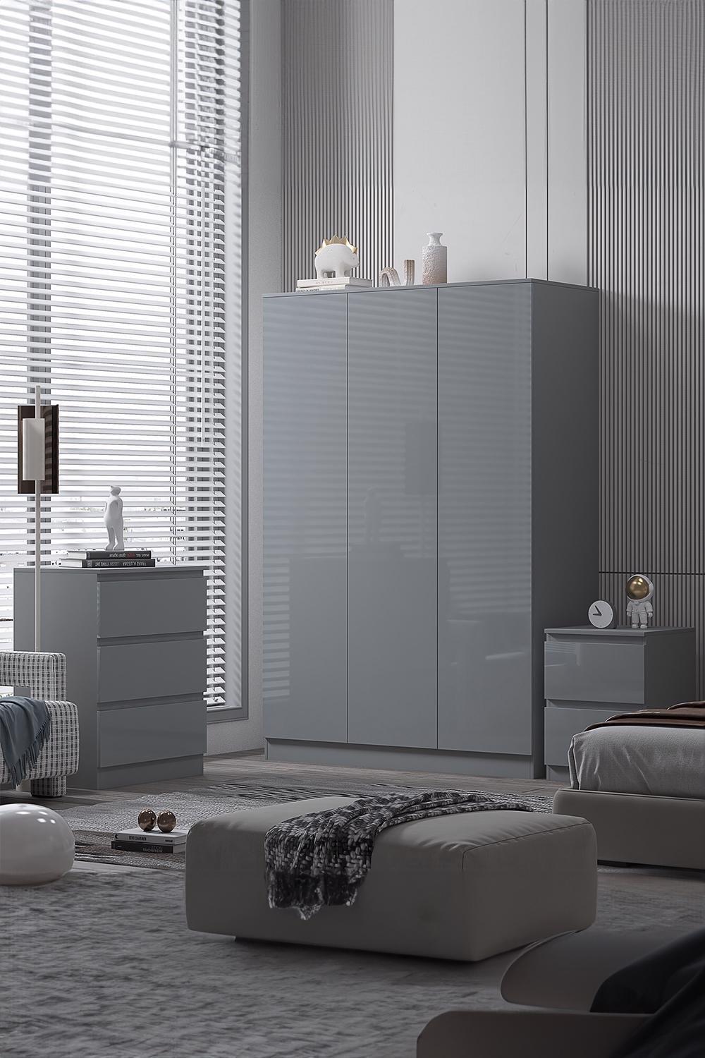 Stora 3 Door Triple Wardrobe Large High Gloss Grey