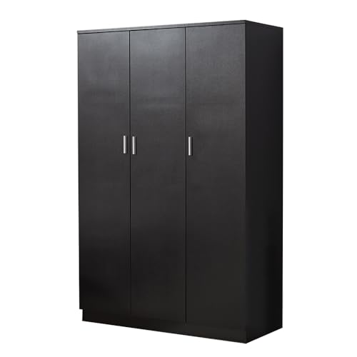 Panana 3 Door Wardrobe with Hanging Rail, 6 Shelves Storage Cupboard Closet, Triple Wardrobe for Bedroom Furniture (Black)