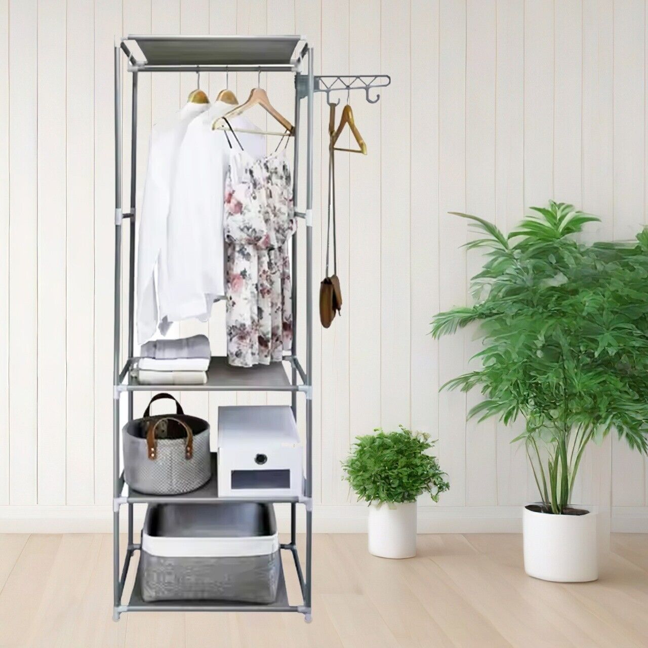 Open Face Coat Rack 2 Shelves Rail Hanger Hallway Stand Clothes Wardrobe Grey UK