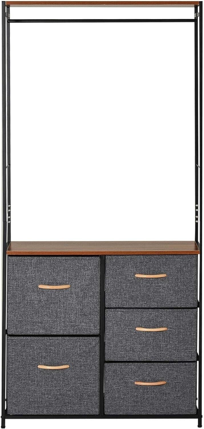 Industrial Chest of Drawers Coat Rack Rail Garment Open Wardrobe Rustic Brown UK
