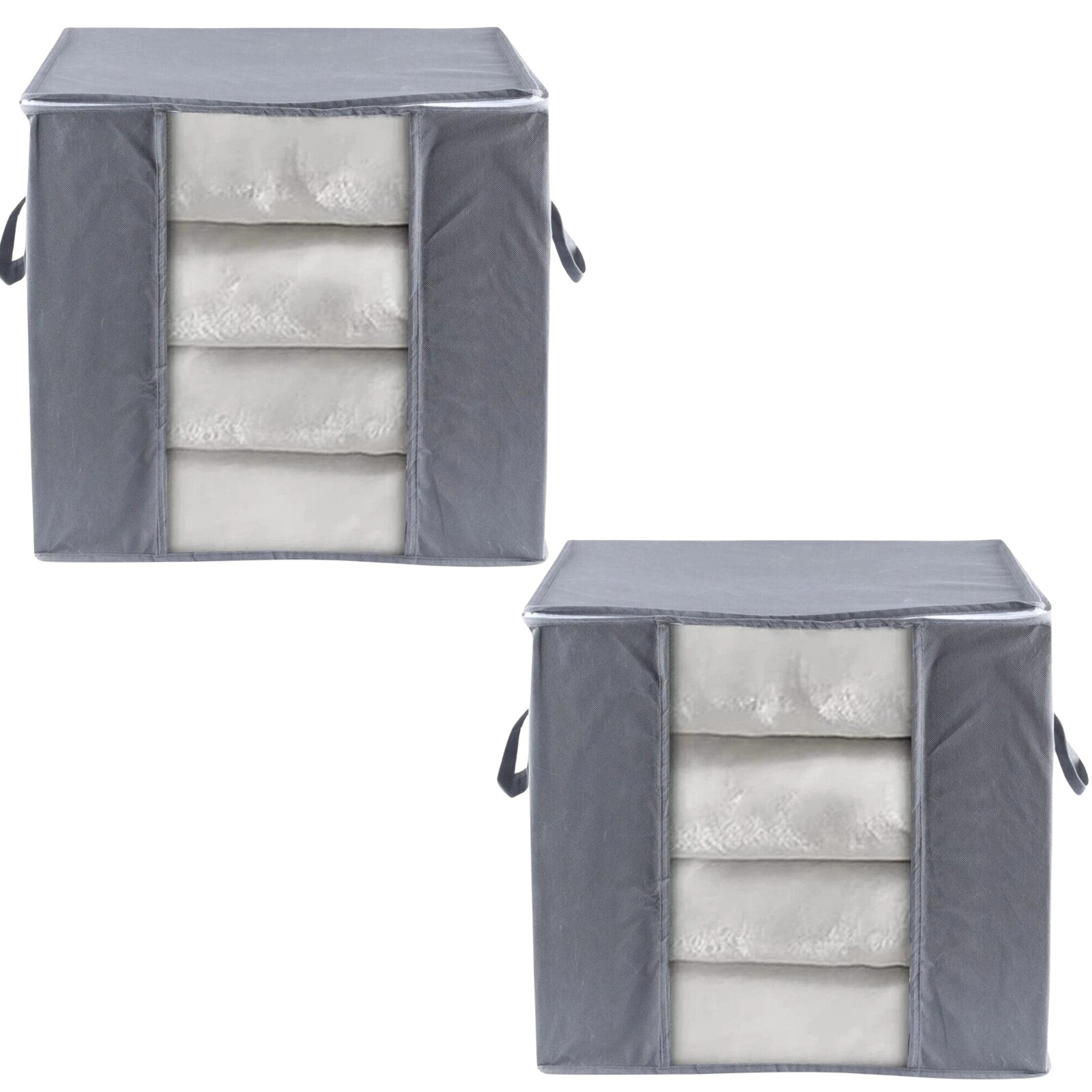 2x 90L Foldable Clothes Storage Box Durable Zip Bag Wardrobe Organiser Cube UK