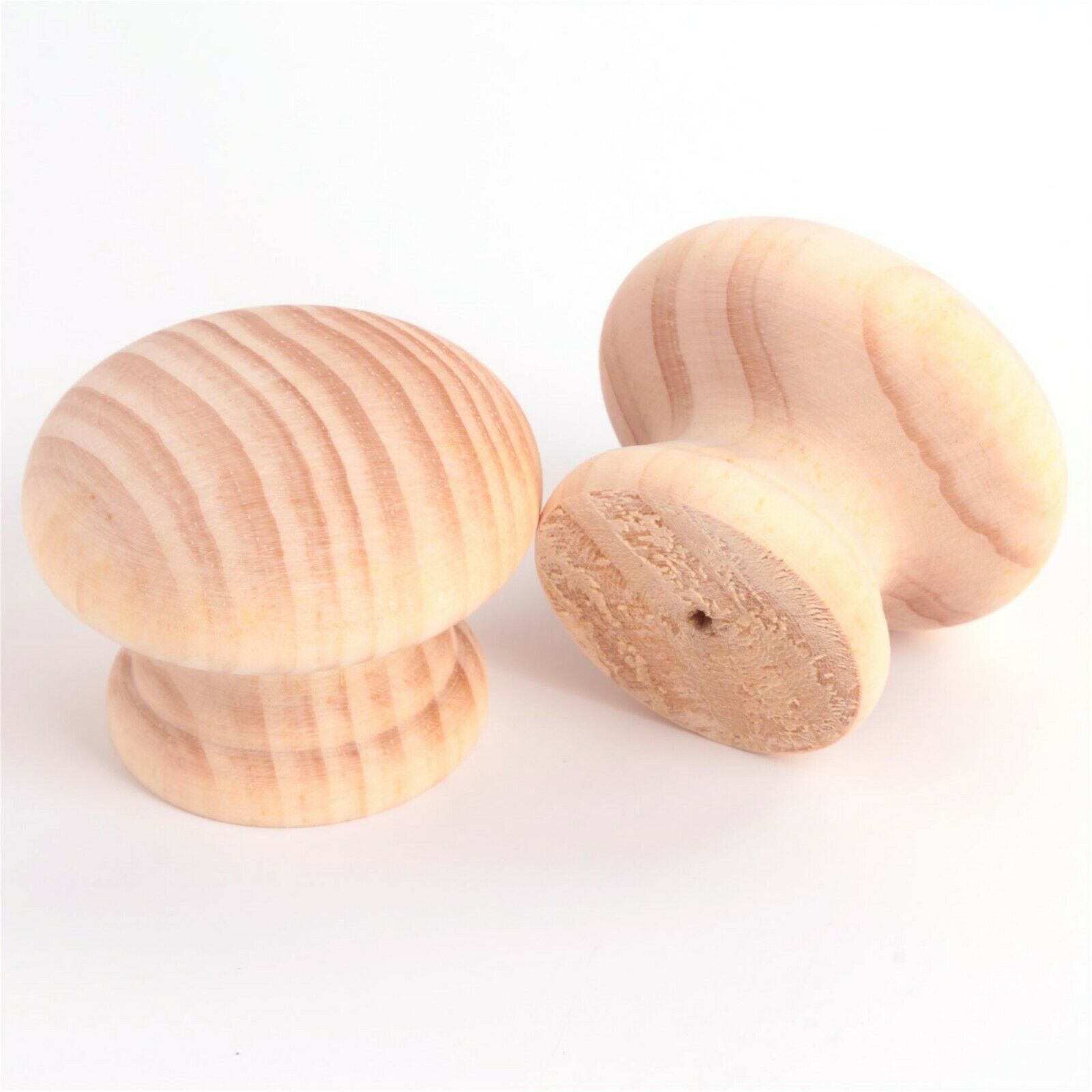 UNSTAINED DOOR KNOBS 2x Plain Wooden 45mm Drawer Cabinet Wardrobe Pull Handle UK