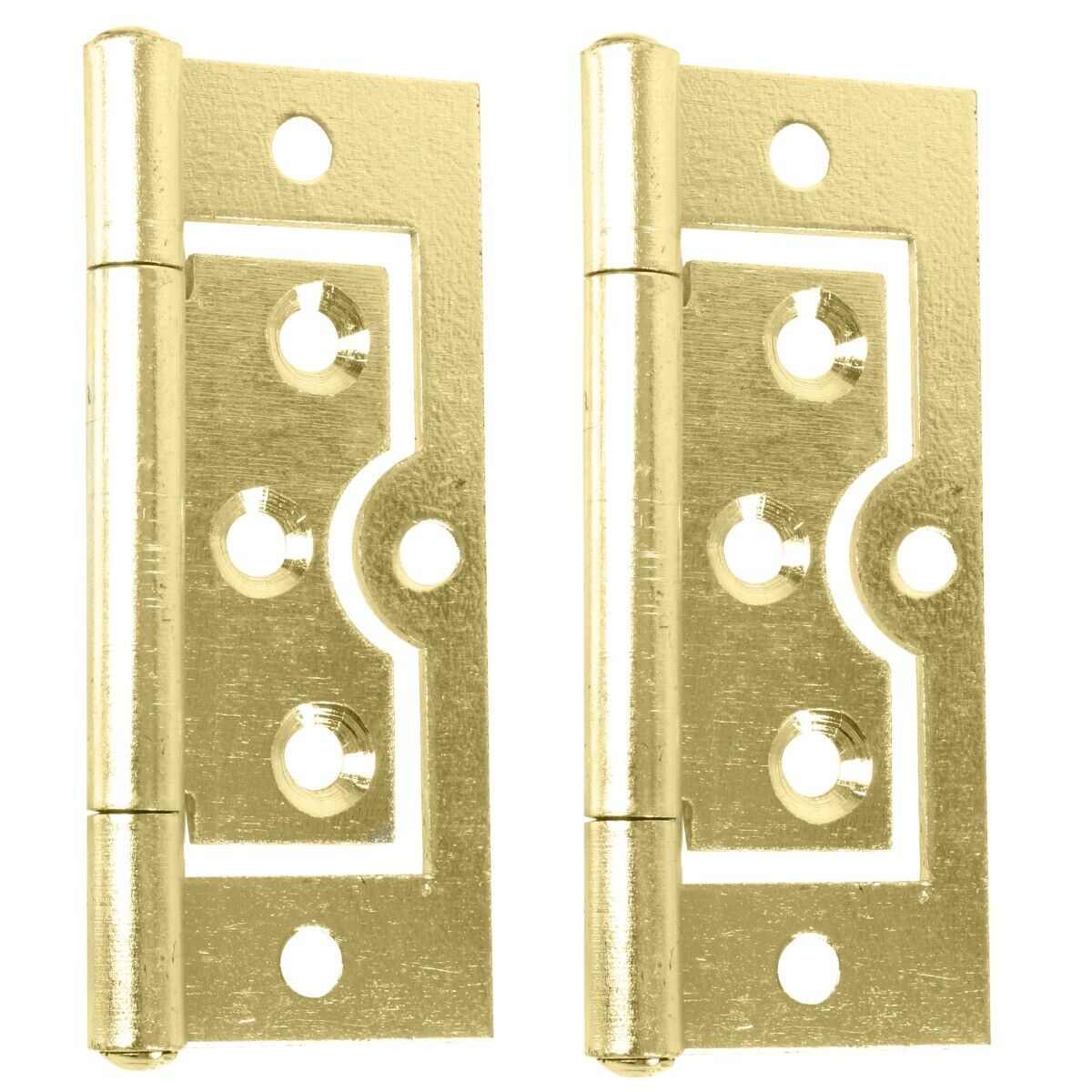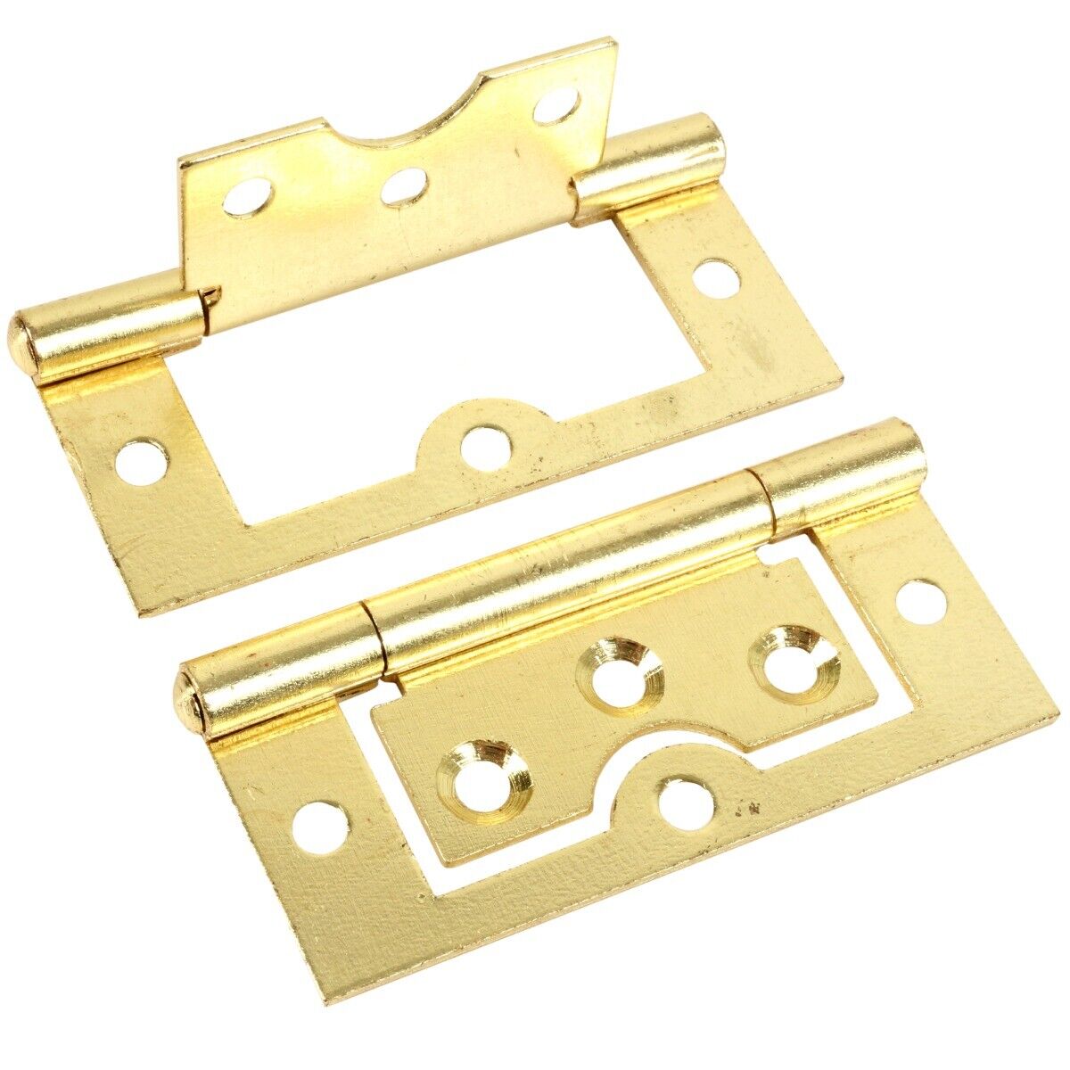 BRASSED FLUSH HINGES 2x High Quality 75mm Door Cabinet Cupboard Wardrobe Gold UK