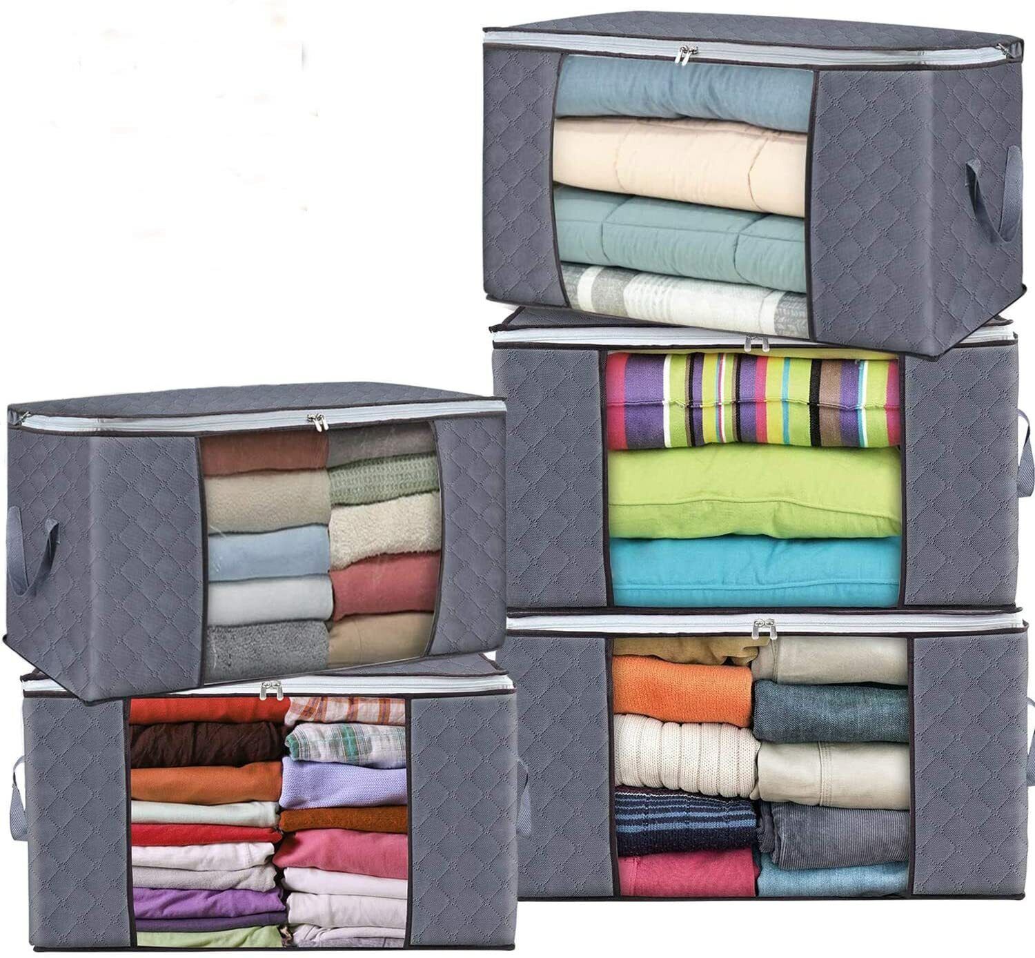5Pcs Large Underbed Clothes Storage Bags Zipped Organizer Wardrobe Cube Boxes UK