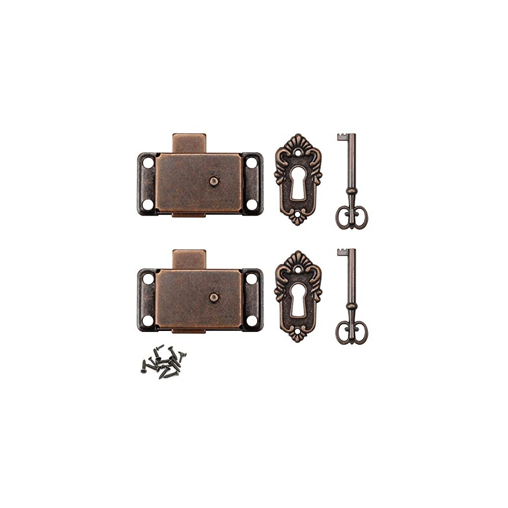 2 Pcs Antique Cabinet Door Lock Sets, Antique Cabinet Lock with Key, Vintage Cabinet Door Lock for Wardrobes, Cabinets, Drawers, Boxes