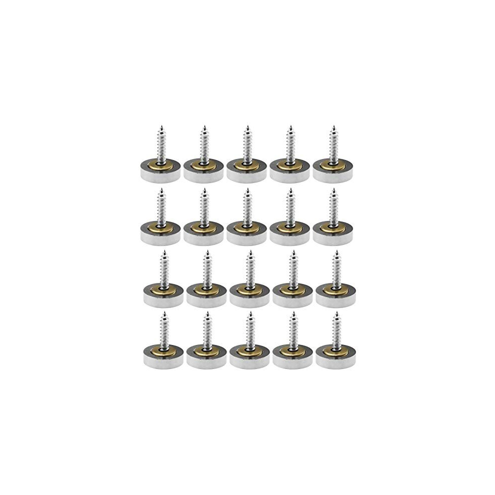 20 Sets of Flat Mirror Nails, Screws Washers & 10mm Decorative Covers Silver Brushed for Mirror Tables Wardrobes Bath Plates