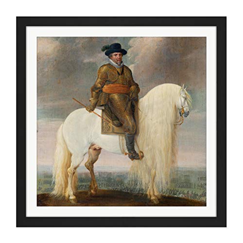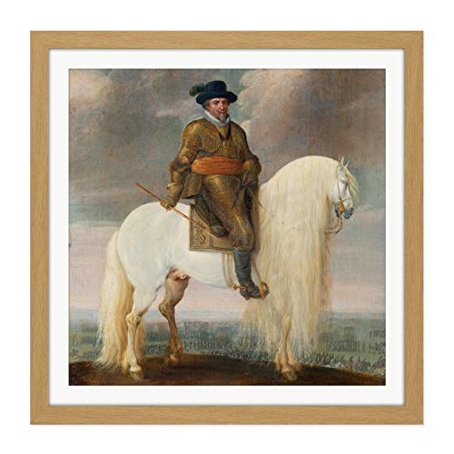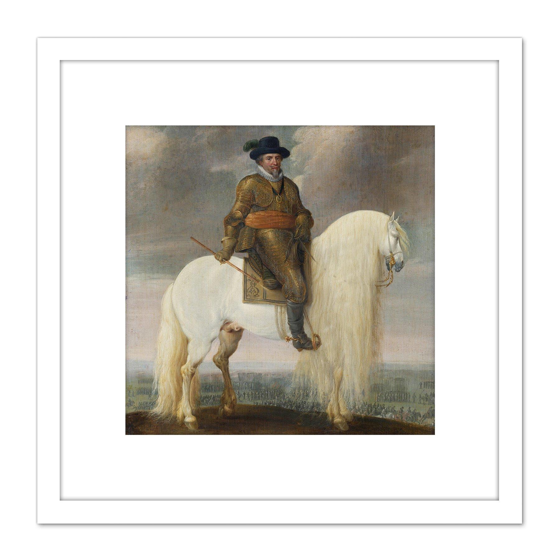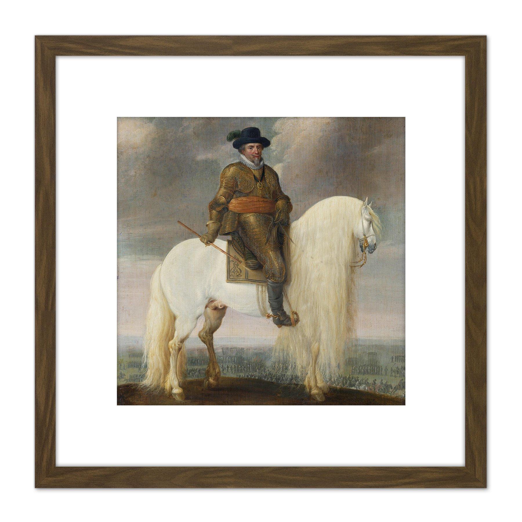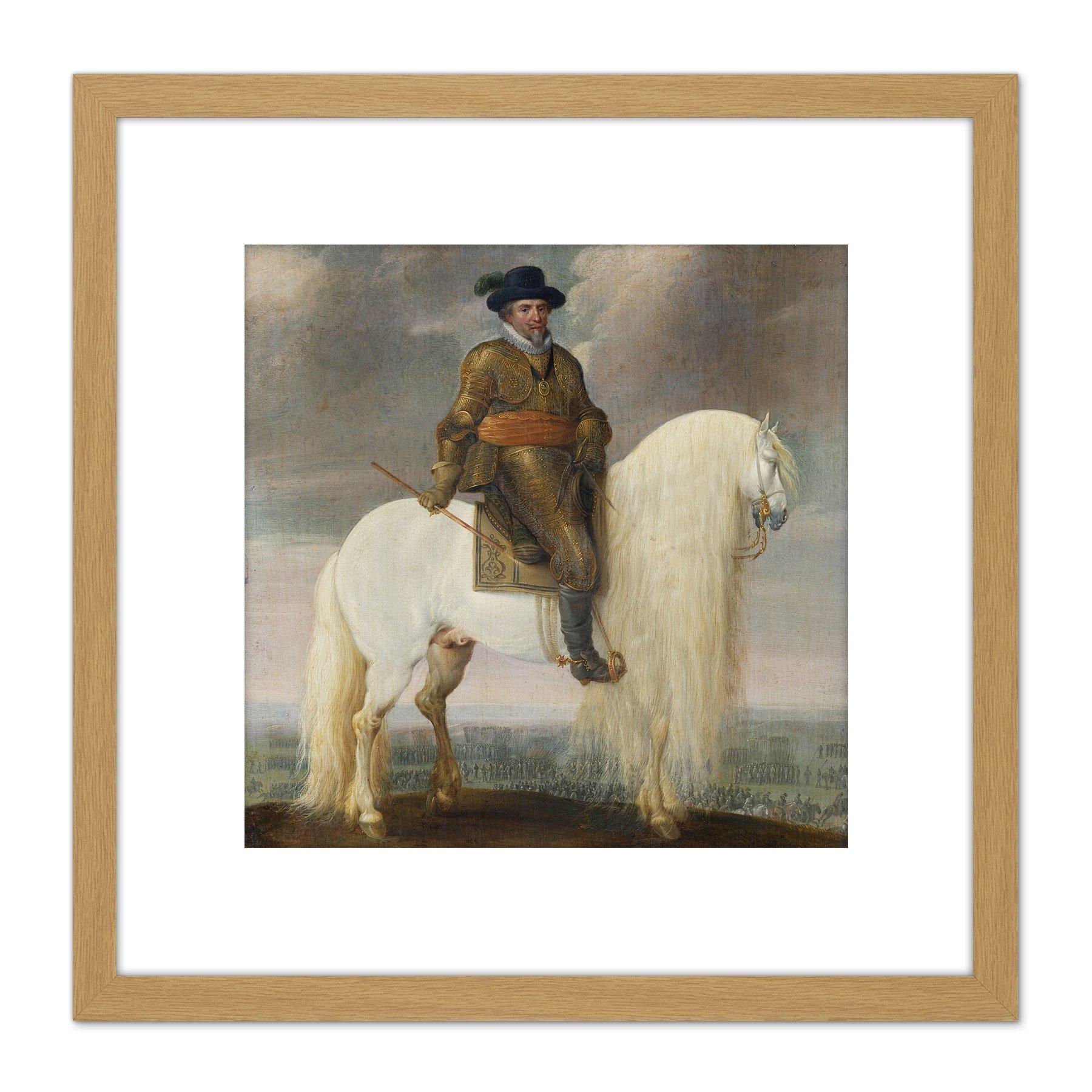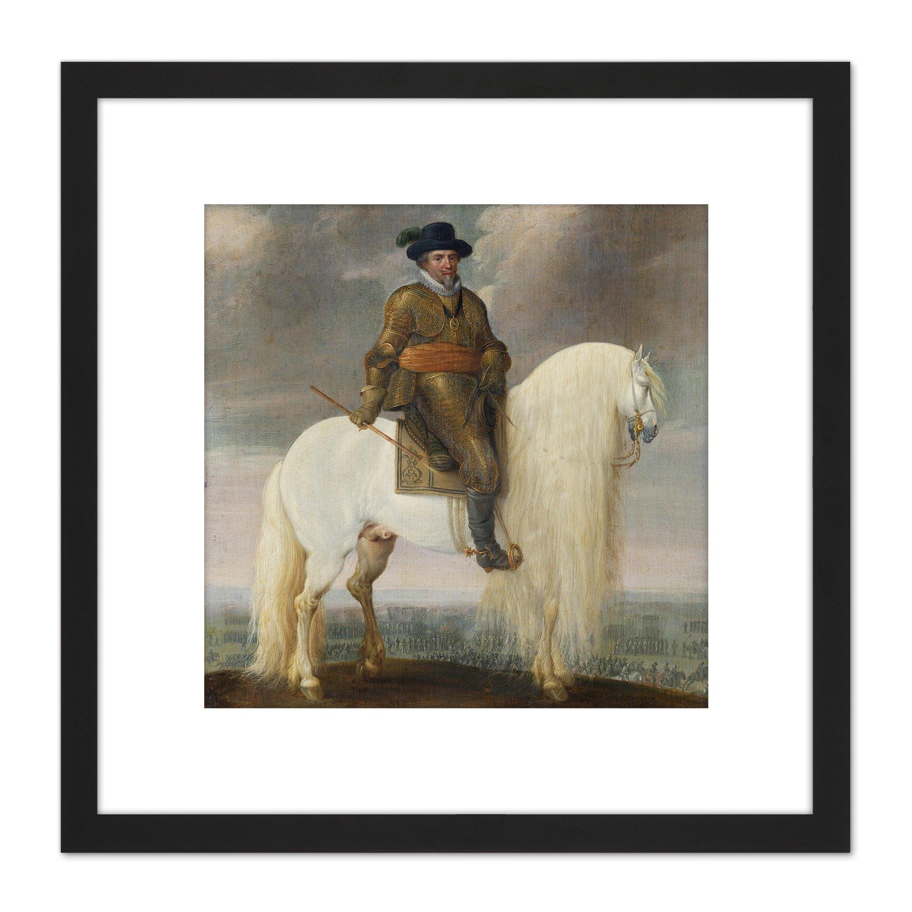 Artery8 Van Hillegaert Prince Maurits White Warhorse Painting Square Wooden Framed Wall Art Print Picture 16X16 Inch