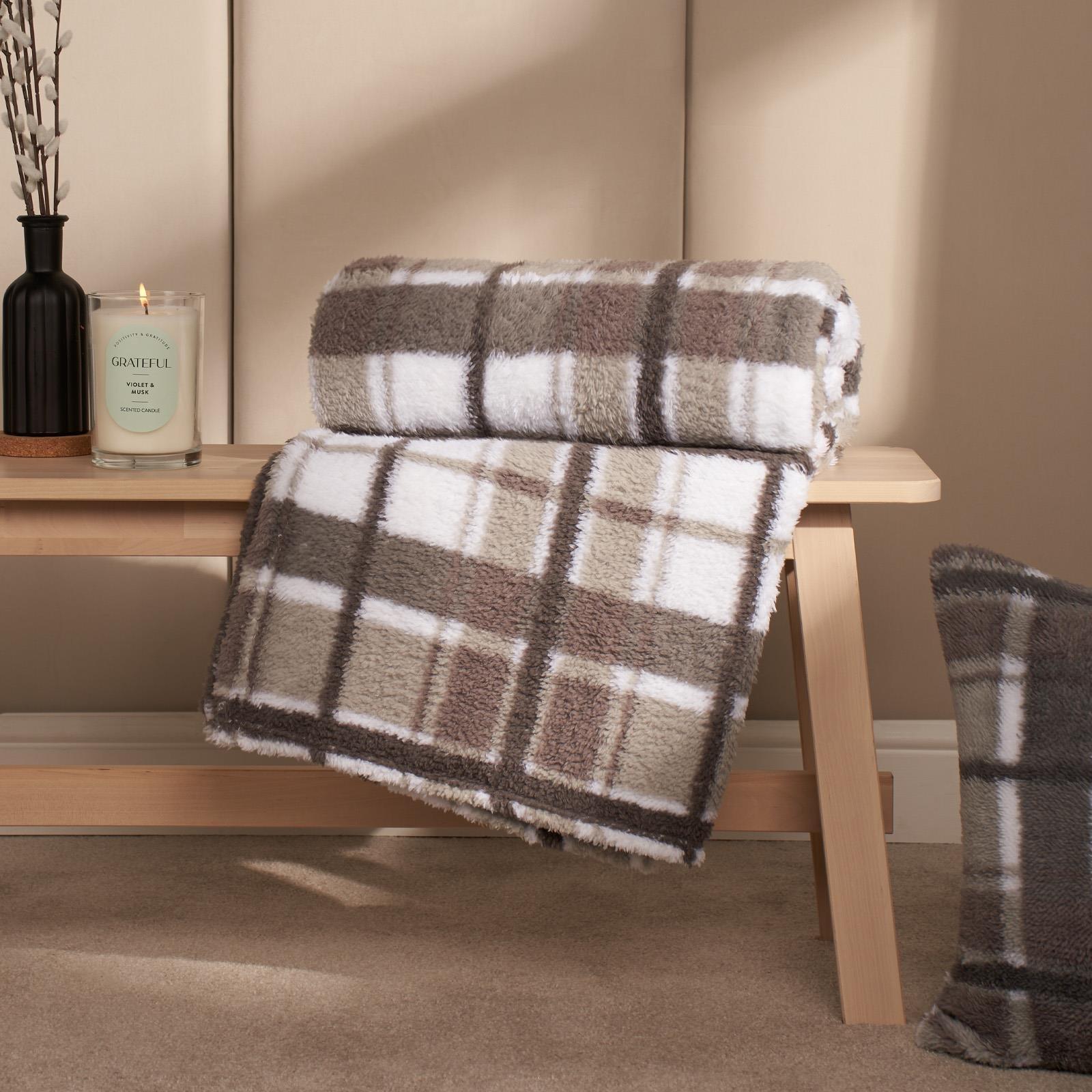 Check Tartan Teddy Fleece Throw Over Bed Blanket Warm Soft