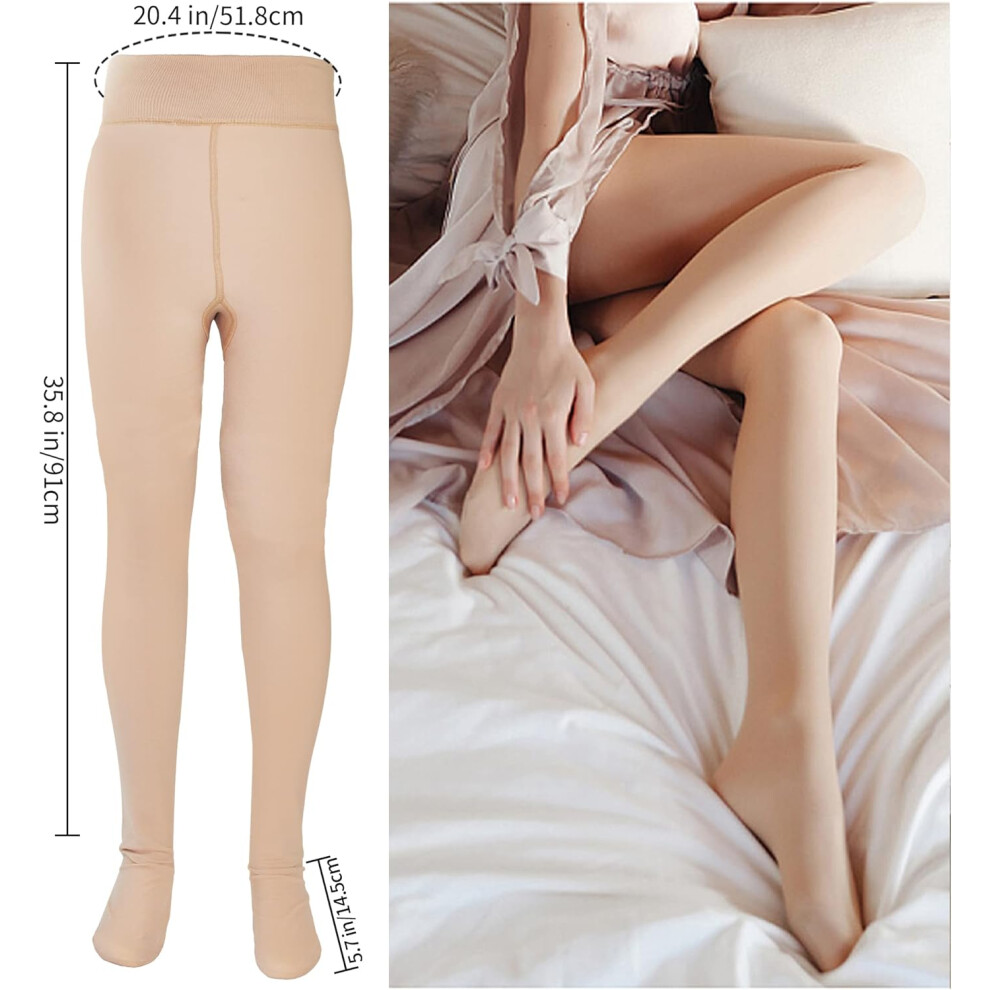 Aaronano Women's Fleece Lined Fake Translucent Tights Thermal Warm Cozy Leggings Tights for Women Winter Tan S-M