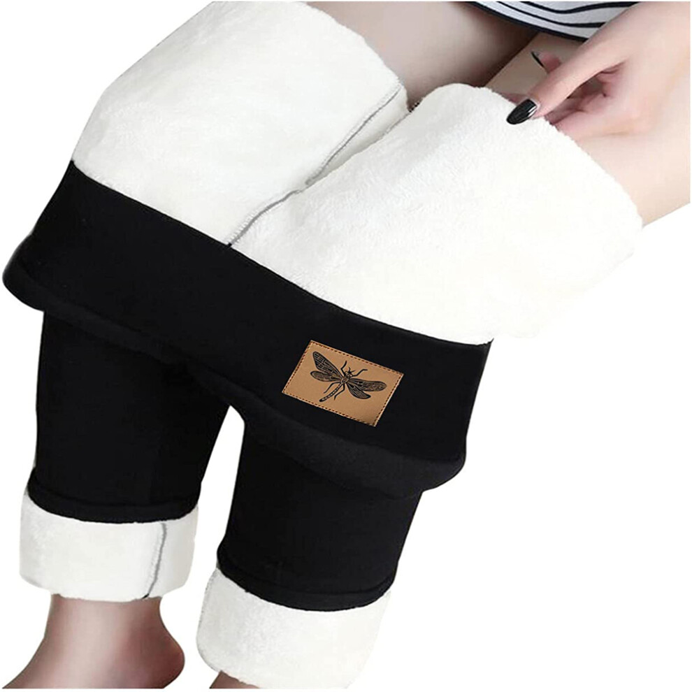 Runmeihe Warm Leggings for Women UK, Ladies High Waisted Thermal Leggings, Winter Thick Underwear for Workout Yoga Running Hiking Gym (UK, Alpha, S, M, Regular, Regular, Black)