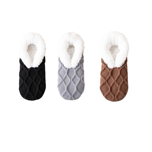 ILZMMAU - 3 Pairs Fleece Lined Non Slip Socks Indoor Fuzzy Warm Socks for Women, 3 pairs - c, Una talla
