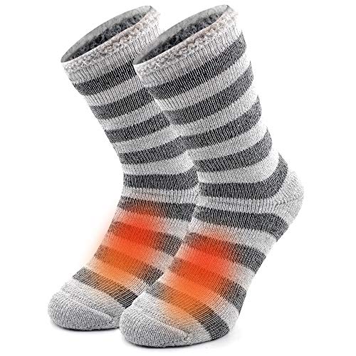 Busy Socks Winter Warm Thermal Socks for Men Women Extra Thick Insulated Heated Crew Boot Socks for Extreme Cold Weather, Light Grey Striped, 1 Pair, M