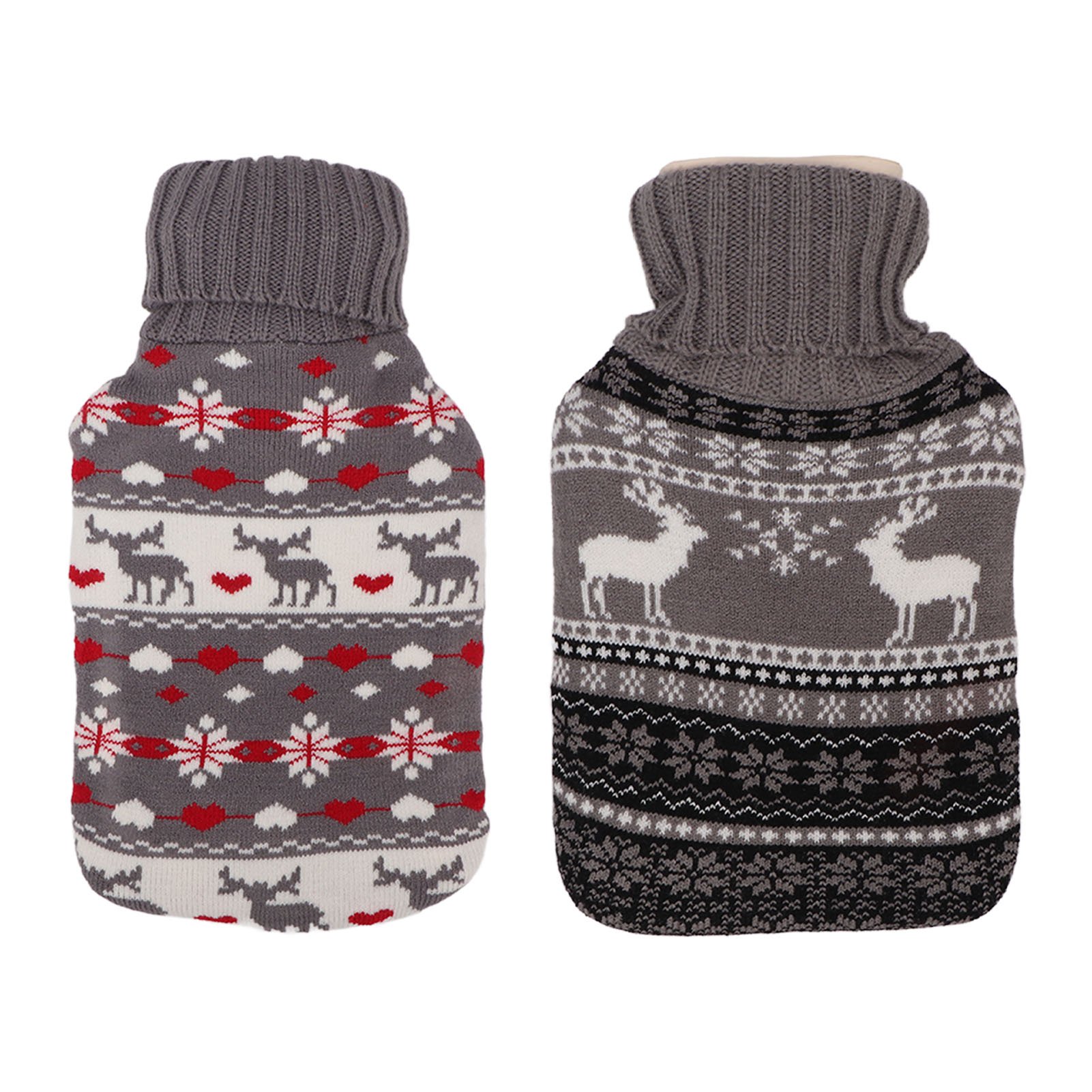URMI Hot Water Bottle with 2 Pack Waist Cover, Warm Bag Rubber Winter Pouch Soft Plush Hand Warmer Cover (Grey