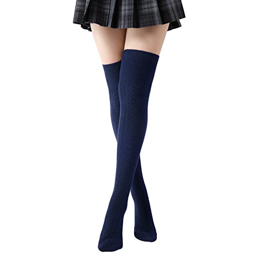 Kefiyis Thigh High Socks Women's Knee High Socks Over the Knee Cotton Socks Long Knitted Warmer Stockings(Navy Blue), One Size, (General)