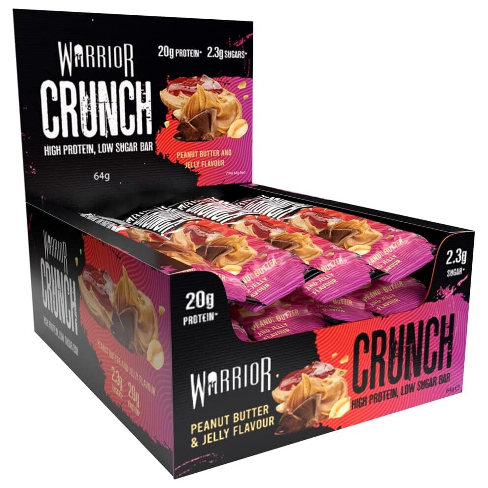 Warrior, CRUNCH - High Protein Bars - 20g Protein Each Bar - 12 Pack x 64g, Peanut Butter Jelly
