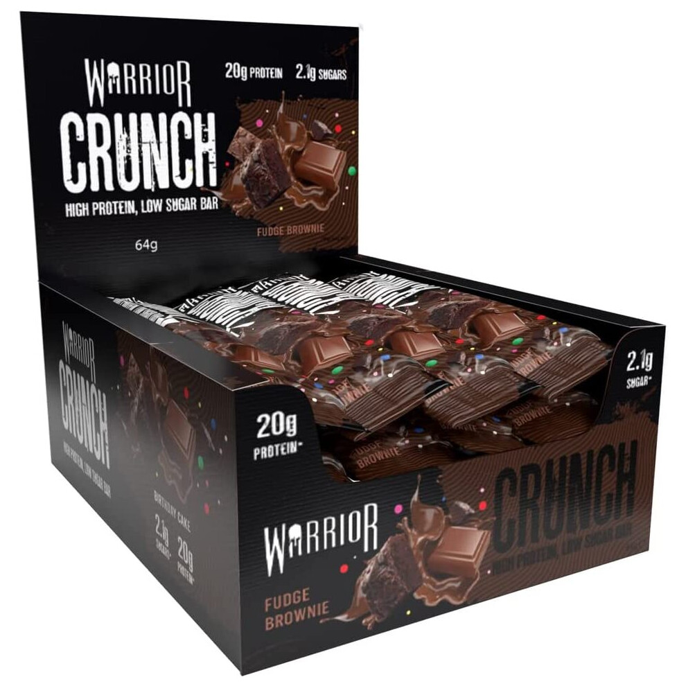 Warrior, CRUNCH - High Protein Bars - 20g Protein Each Bar - 12 Pack x 64g, Fudge Brownie