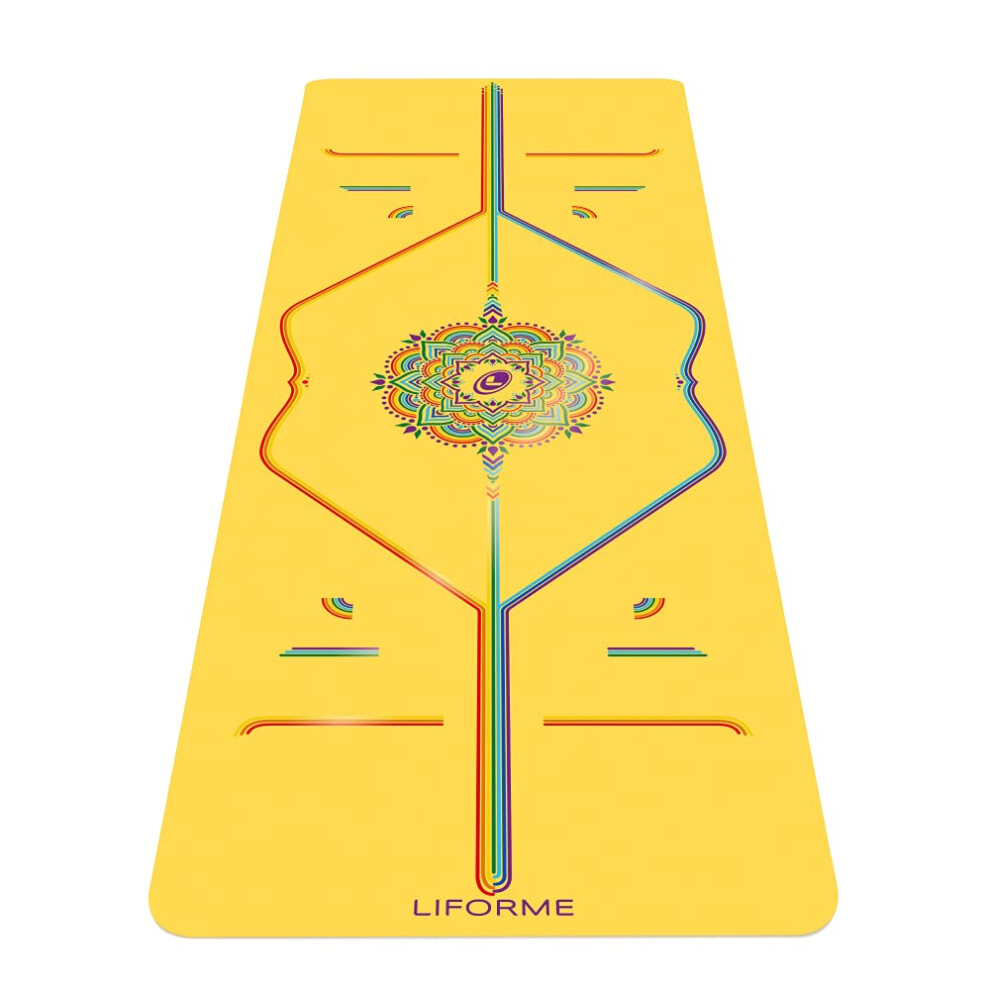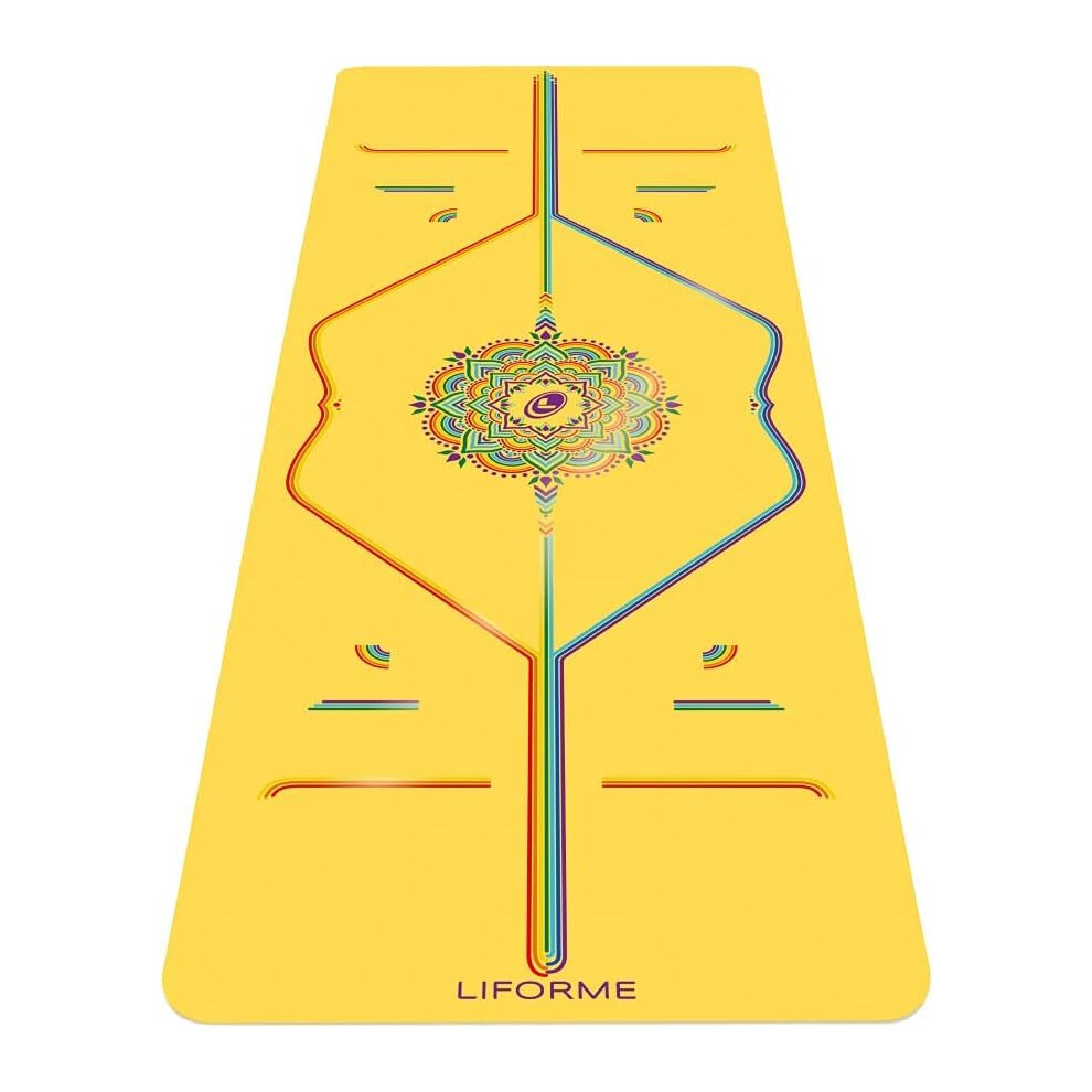 Liforme Printed Yoga Mat Collection – Free Yoga Bag, Patented Alignment System, Warrior-like Grip, Non-Slip, Eco-friendly, Sweat-resistant, Long, Wide and Thick for Comfort - Yellow