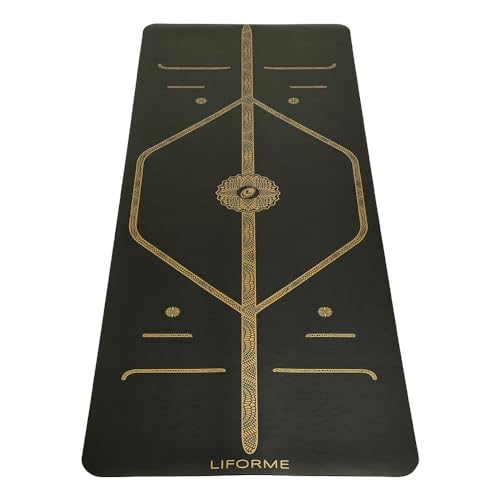 Liforme Printed Yoga Mat Collection - Free Yoga Bag, Patented Alignment System, Warrior-like Grip, Non-Slip, Eco-friendly, Sweat-resistant, Long, Wide and Thick for Comfort (Black & Gold)