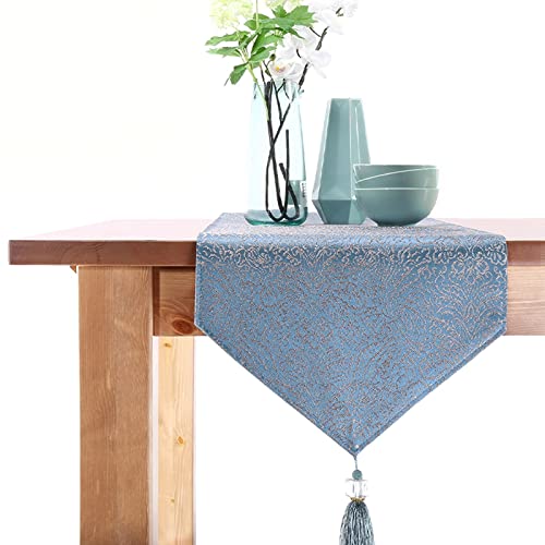 WXKAGF Table Runner Washable Jacquard Table Runners Blue Tablecloth Elegant for Dining Room Party Holiday Decoration Table Runner Cotton Polyester 35 x 228 cm