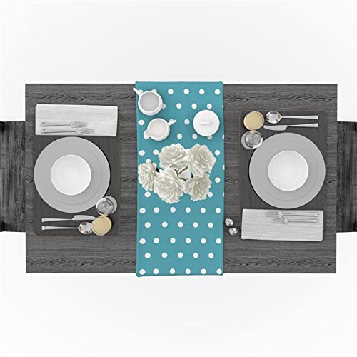 WXKAGF Table Runner Washable Dot Table Runners Cyan Blue for Dining Room Table Party Wedding Decoration Table Runner Cotton Linen 41 x 183 cm