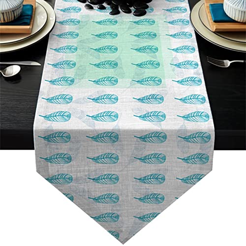 WXKAGF Table Runner Washable Leaves Table Runners Green for Dining Room Party Holiday Decoration Table Runner Cotton Linen 35 x 180 cm