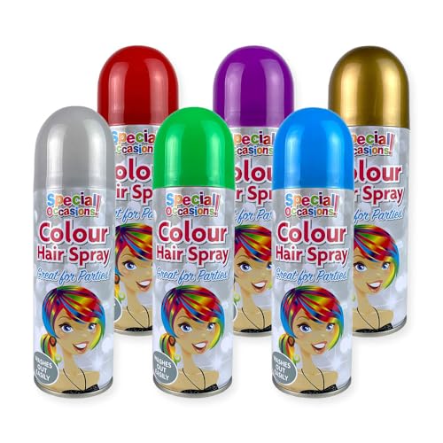 Zopper 6 x 200ml Hair Spray Multi Colour for Special Occasion Temporary Washable Fancy Dress Up Hairspray Can