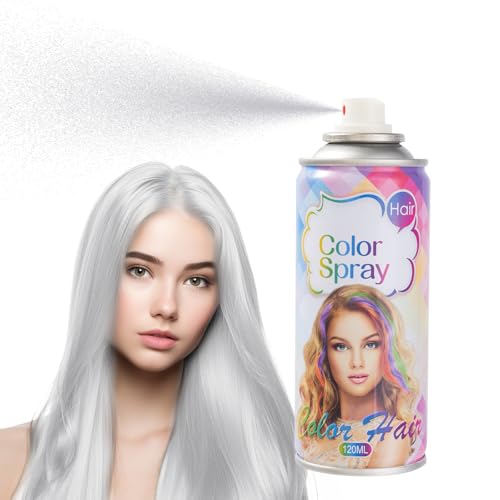 Temporary Hair Color Spray, White Hair Spray Temporary, Colour Hair Spray, Hair Dye Spray, Washable, Easy To Colour, Mild Formula, Suitable For Various Hair Types, Works On All Hair Colors 120ml