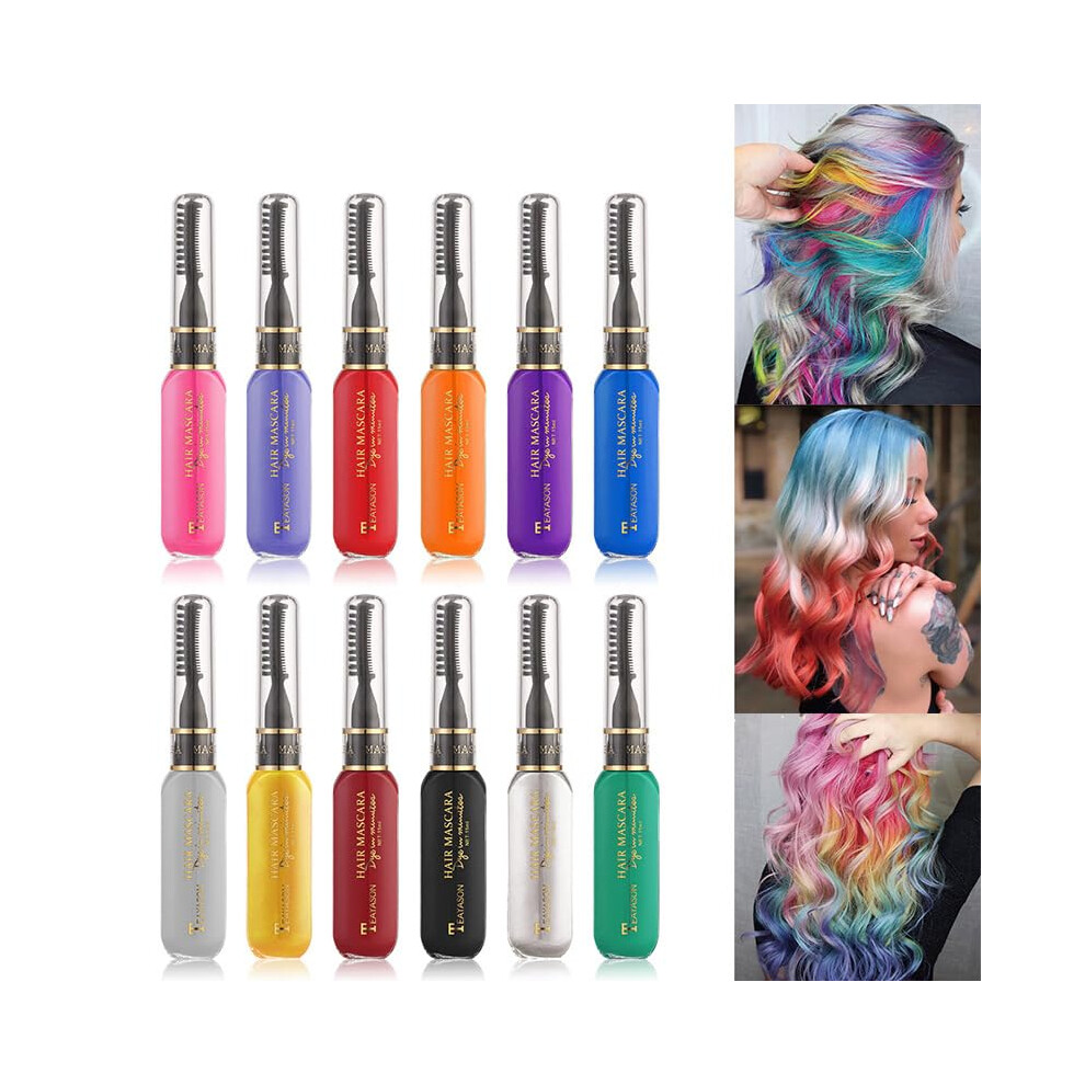 12 Hair Chalks, 12 NEON & METALLIC Hair Chalk, Non-Toxic Easy Washable Hair Dye