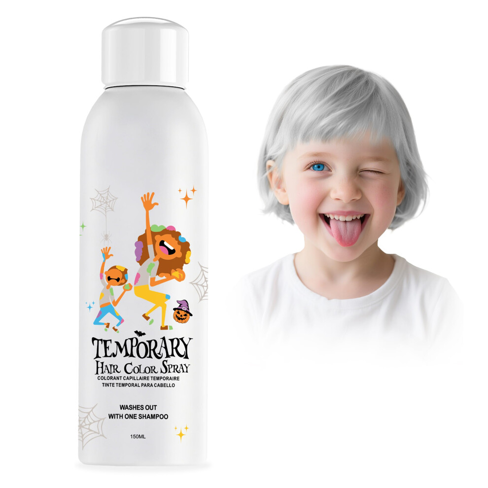 Temporary Hair Color Spray White Silver, Fast Drying Washable Hair Dye for Kids Adults Halloween Party 150ml