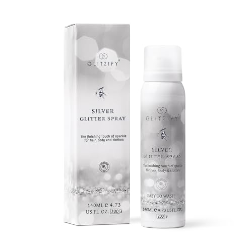 Glitzify Silver Body Glitter Spray for Hair & Clothes - Eco-Friendly Festival Shimmer, Quick-Dry Washable Fragrance-Free, 140ml Sustainable Shine