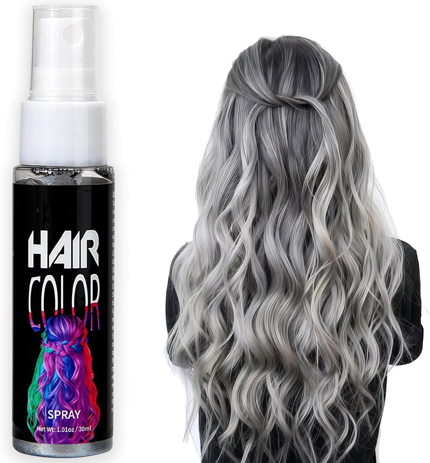 Hair Colour Spray Grey, Temporary Hair Dye, Grey Coloured Hair Spray, Semi Perma