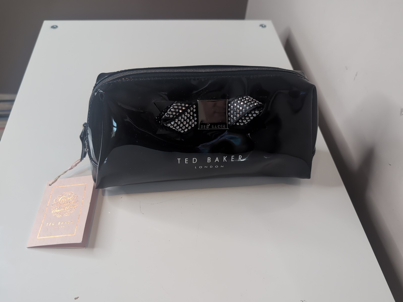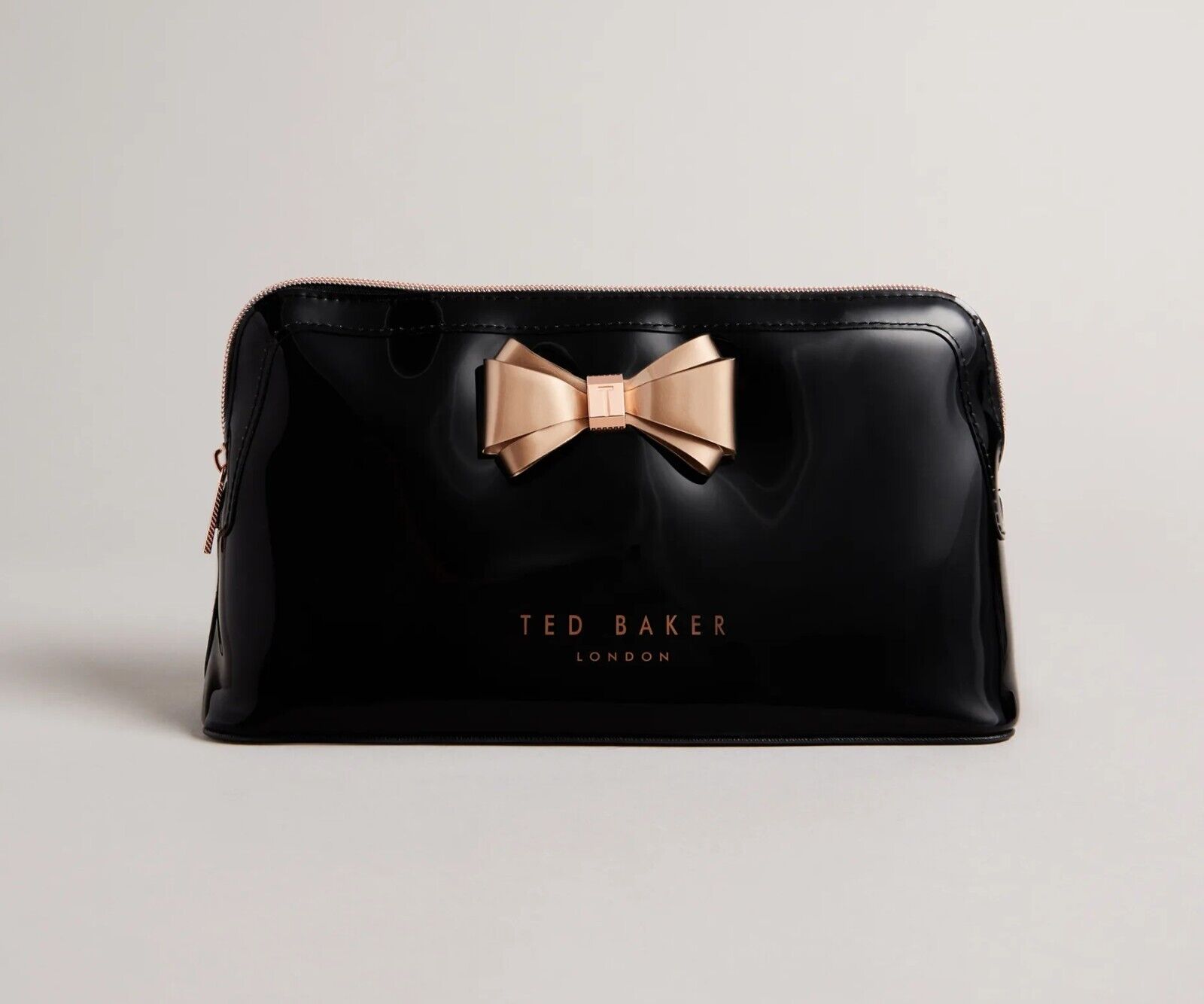 TED BAKER ❤️ Black Shiny Bow Large Washbag 'ABBIE' : 8.5 x 15.5 x 27cm ❤️ BNWT