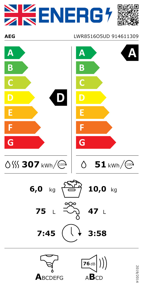 8000 Series LWR851605UD 10kg/6kg Washer Dryer