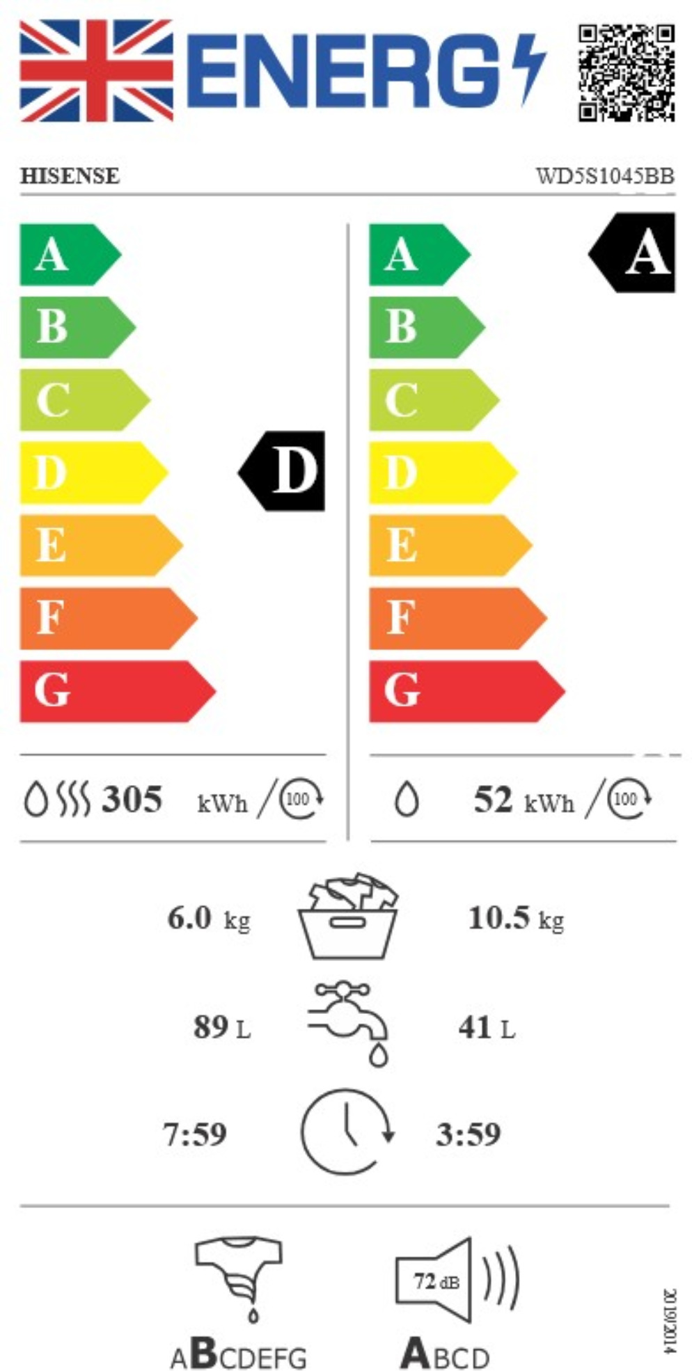 WD5S1045BB 5S Series 10Kg / 6Kg Washer Dryer with AutoDose - Black