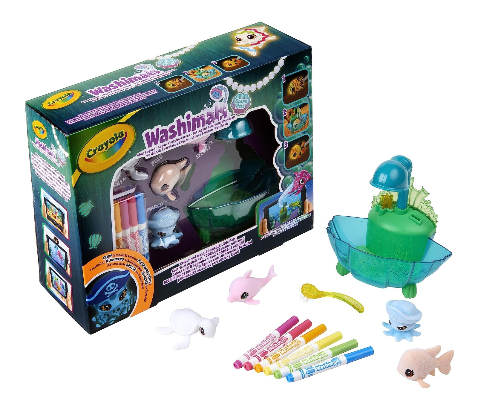 Crayola Washimals Ocean Glow Lagoon Playset | Colour & Wash Pets | 6 Markers